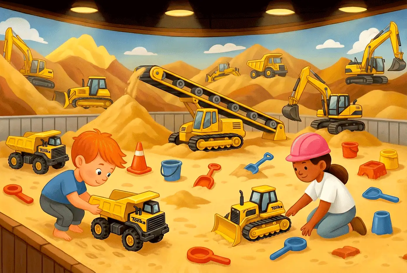 Grab your shovels (or hands!) and uncover fun in our massive indoor sandbox!
